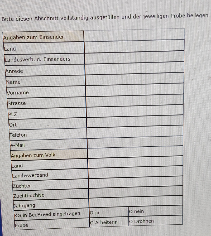 Info: Merkmalsuntersuchungsproben von Bienen entnehmen und versenden